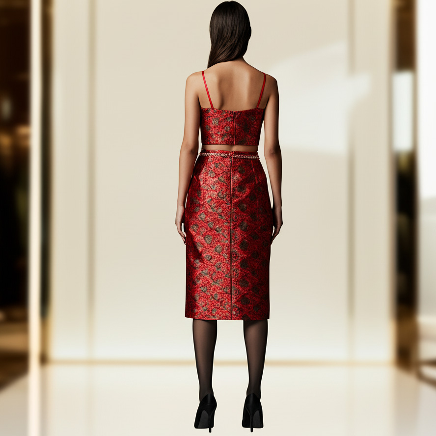 کراپ قرمز ترمه رضایی با یقه دلبری و استر کامل — ترکیبی از اصالت و مدرنیته در طراحی خاص برند ADLwear.